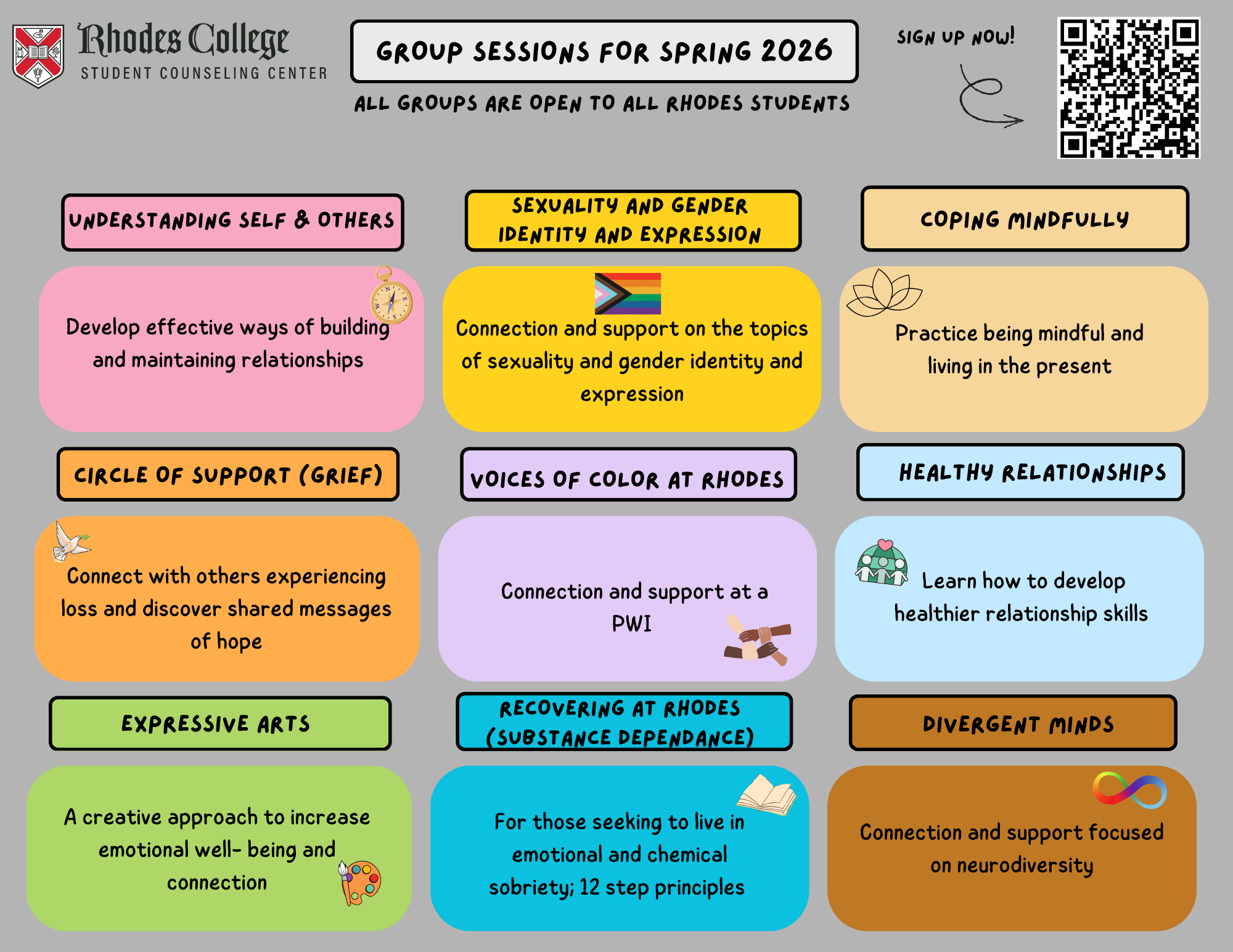 In today’s ever-changing world, support is more important than ever. In an effort to ensure that students have a wide variety of support options, Rhodes now has multiple ways for students to access mental health resources 24/7/365.